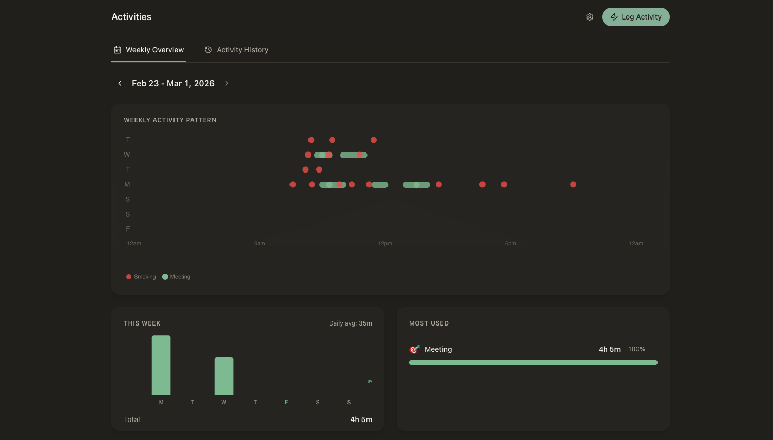 Activities give you an honest record of how you spend your days. When they feed into goals and metrics automatically, you stop guessing about your habits and start seeing the patterns clearly.